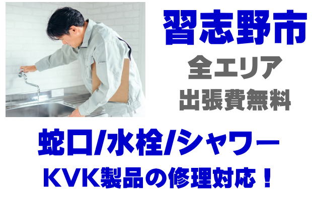 習志野市で水栓メーカーKVKの修理業者をお探しなら当社までお気軽にお問い合わせください。蛇口の水漏れ、シャワーの故障などKVK製に関するトラブルなら何でもご相談ください。
